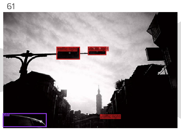 61but is a-low quality image where it's very difficult to discern the features, and it is not clear whether the small object in the distance is an actual traffic light. Images like this do not positively contribute to model performance, so let's delete all the data in this sample.
