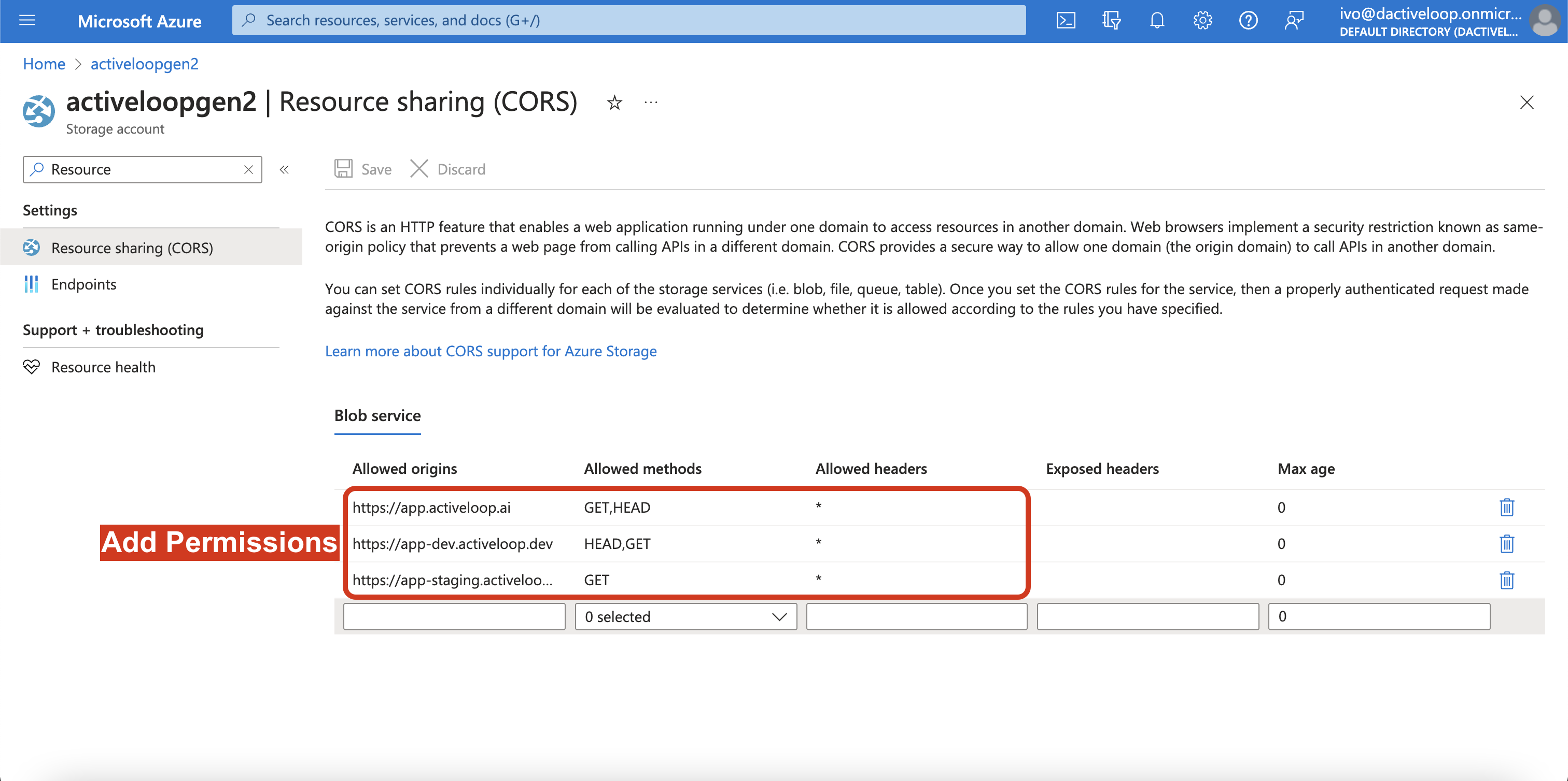 ### Steps for enabling CORS in Azure