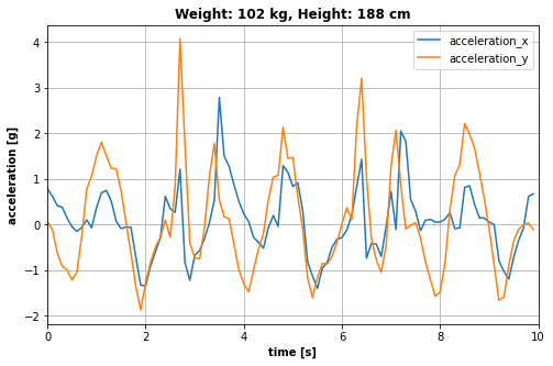 Let's check out the first sample from this dataset and plot the acceleration time-series.