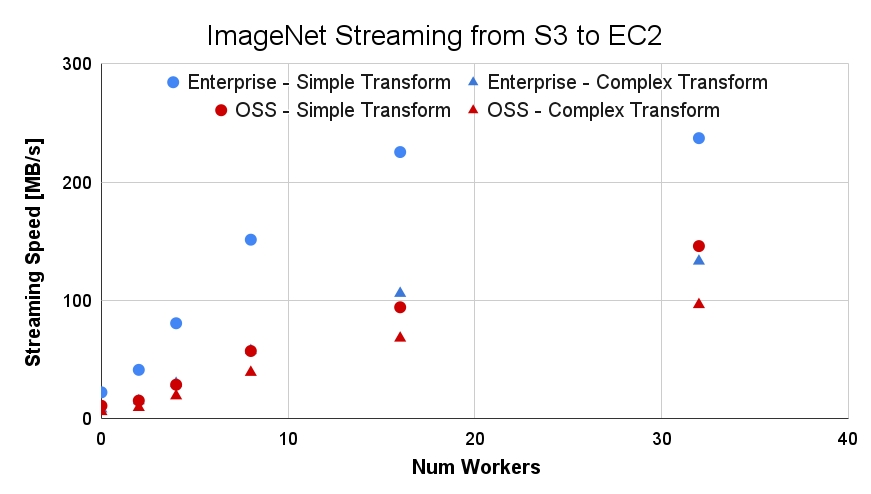 num_workerslinearly improves streaming speed, with diminishing returns beyond 8+ workers.Increasing