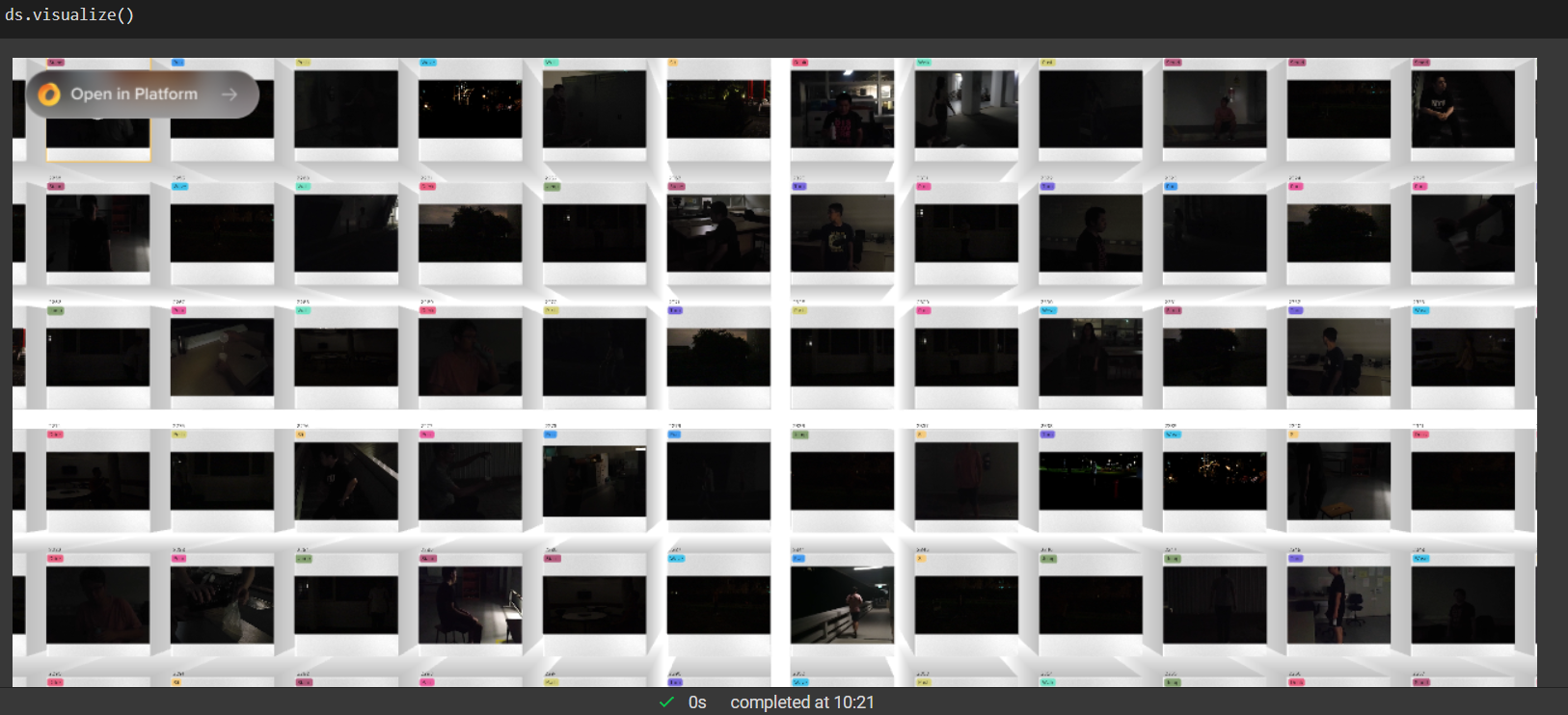 Individual video samples can be instantly visualized by calling .play() on them:
