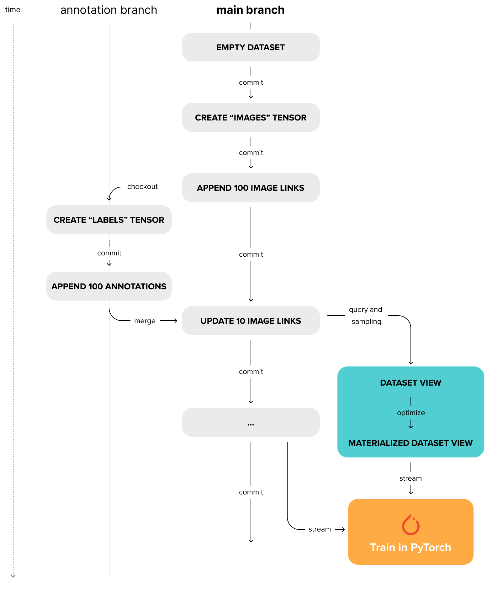 • Datasets have commits and branches, and they can be traversed or merged using Deep Lake's Python API.