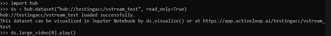 ds = deeplake.empty("demo/video") # create a local datasetCreating a video tensor
