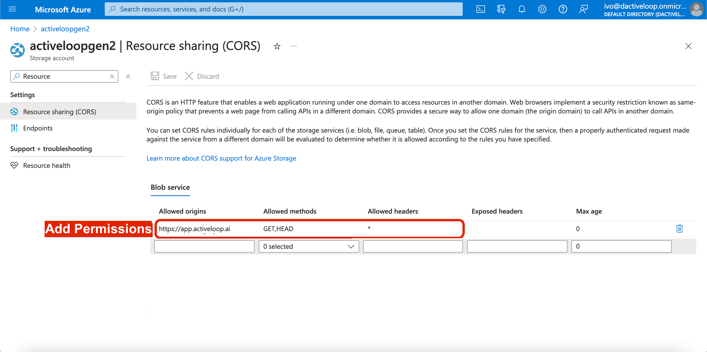 How to enable Cross-Origin Resource Sharing in your Azure account.