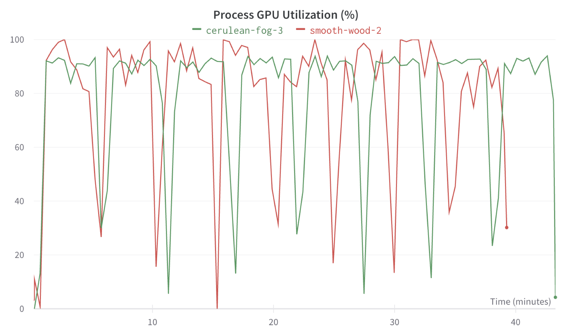 Using W&B automatic logging of CPU and GPU performance, we observe that the GPU utilization for the training runs on this Tesla V100 GPU was approximately 90%, aside from the dips between epochs when the shuffle buffer was filling. Note that the data was streamed from Activeloop storage (not in AWS) to an AWS SageMaker instance. This is made possible by Deep Lake's efficient data format and high-performance dataloader.